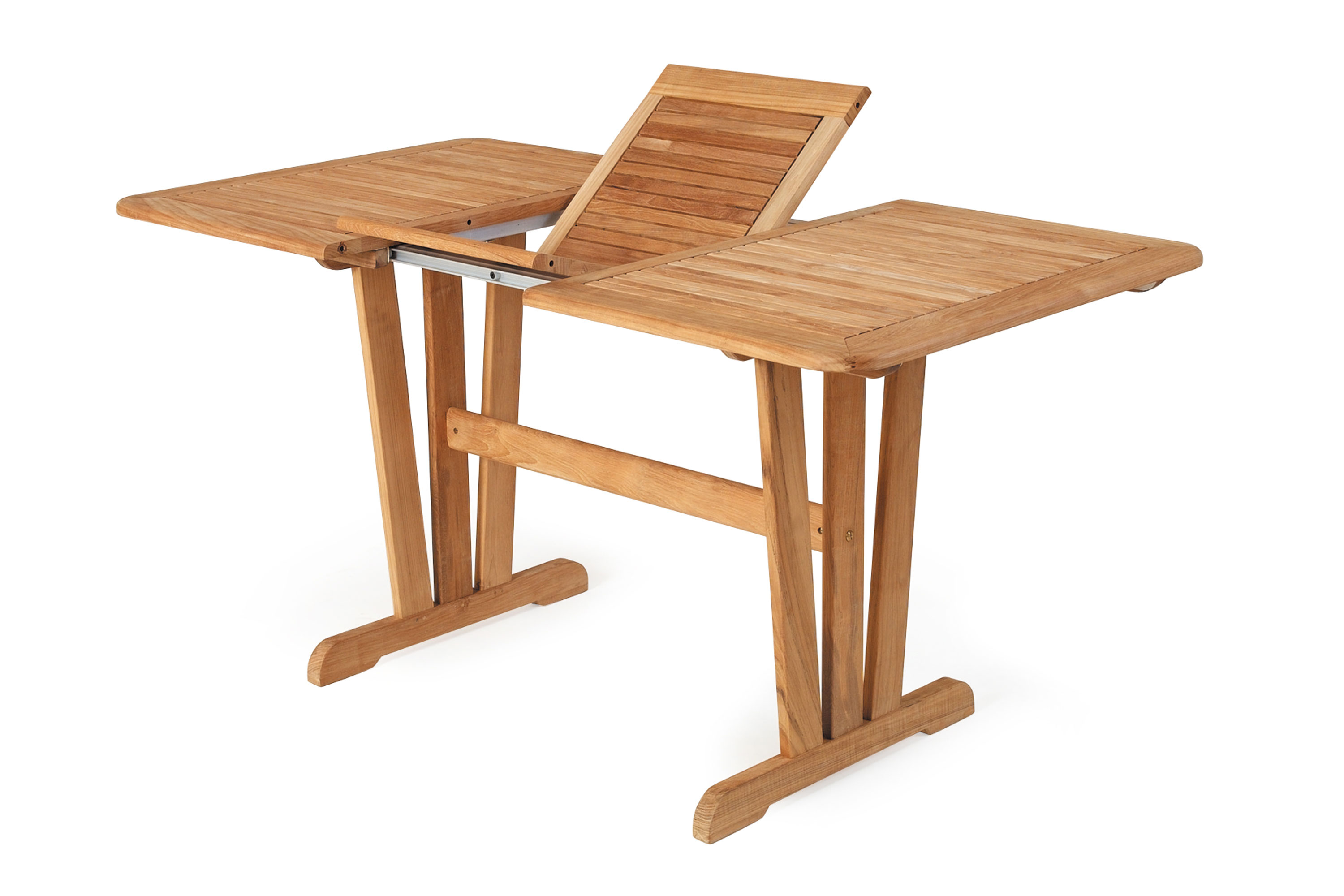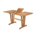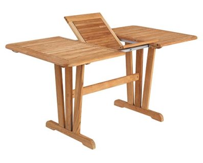 Cornelia teak bordene kan udvides med såkaldte sommerfugle teknik. Bordet fås i to størrelser.