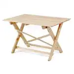 Lägre matbord. Perfekt höjd för sk caféstolar. Behändigt att fälla ihop och tar då liten plats att förvara. Obs! Får ej lyftas i bordsskivan vid förflyttning för då faller bordsbenen ihop. Går att, med rem, ”låsa fast” benen.