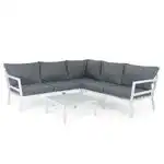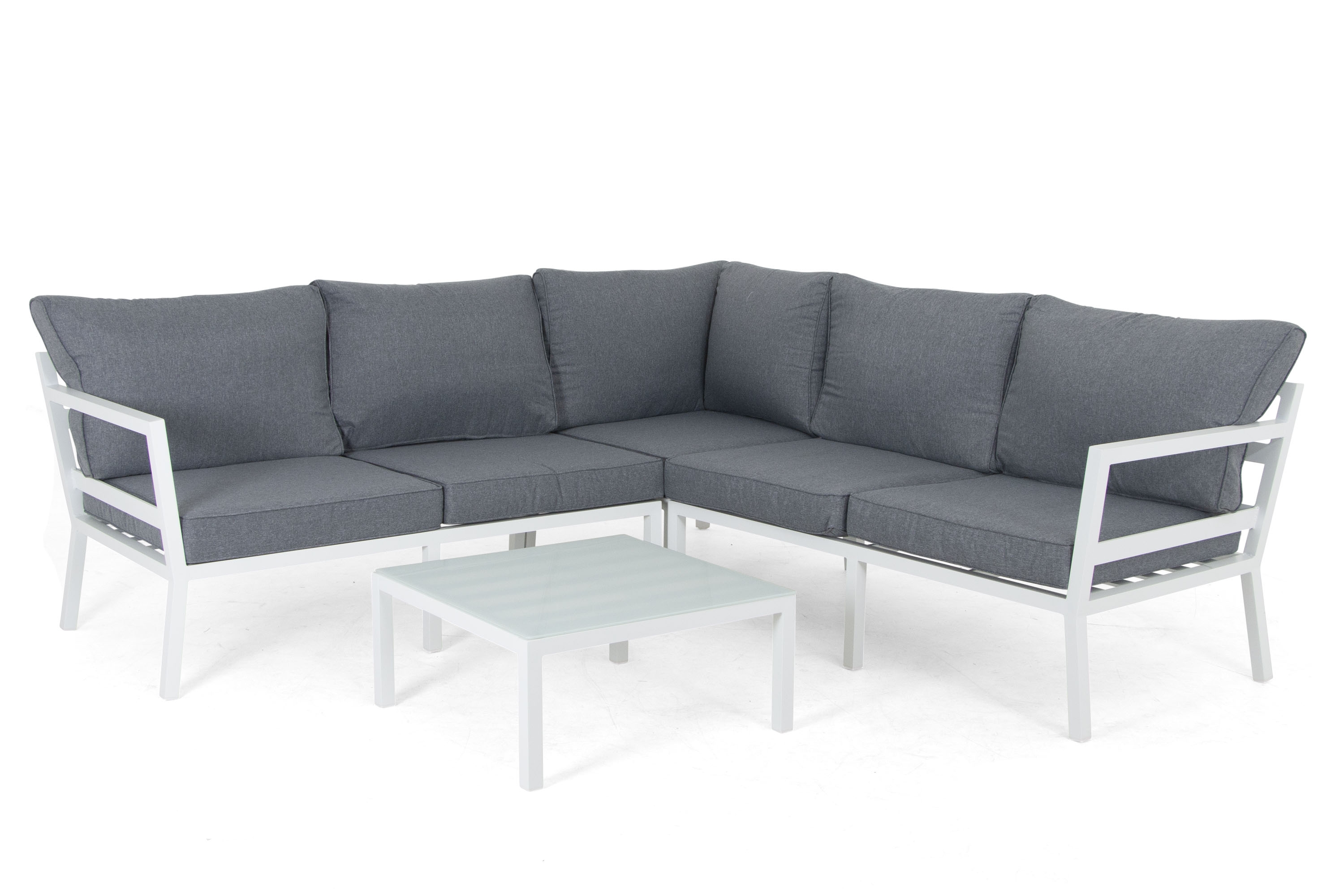 Göteborg sofagruppeHvid med grå hynde2 st 2-personers ende, hjørne & bord 68x68 cm