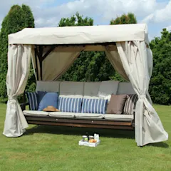 Visse hængekøjer har tag, og andre har ikke. Tagene på vores modeller har også lidt forskellig udformning, nogle er større og andre er mindre. Uanset hvordan taget ser ud, og hvilket materiale det er lavet af, så giver det dig dejlig beskyttelse mod solens stærke stråler. Andre har et mere dækkende tag. Dette beskytter naturligvis lidt mere mod både sol og regn. I sortimentet findes der endda modeller med draperier, som kan trækkes for, hvis du ønsker ekstra meget indramning og beskyttelse, hvilket skaber en virkelig skøn atmosfære.