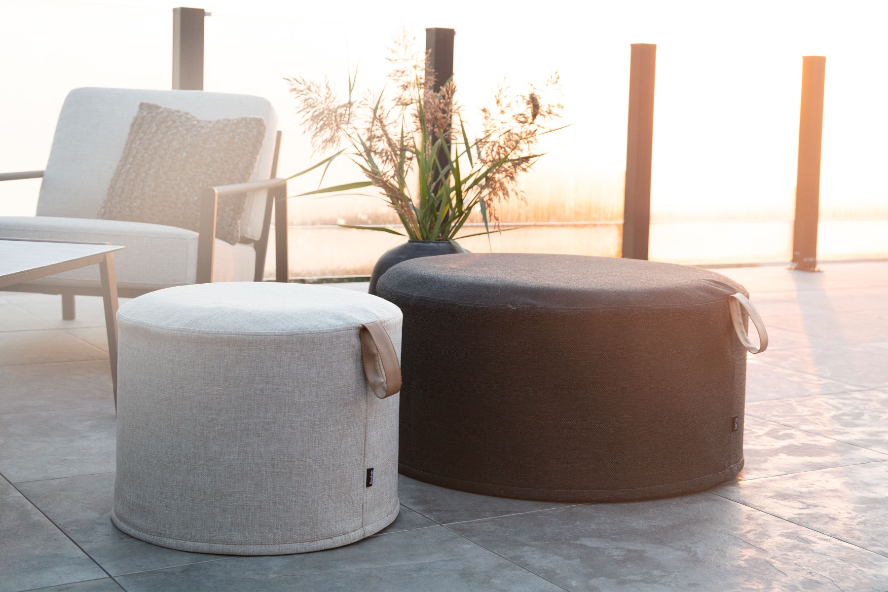 Vejrbestandige puffer i forskellige størrelser og farver
