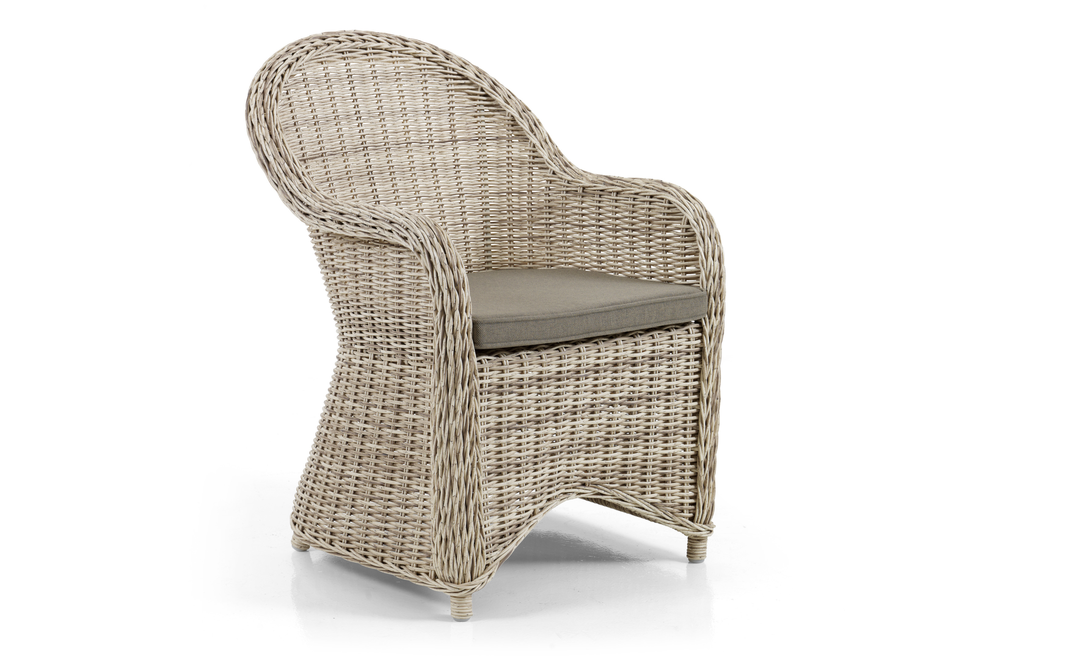 Vores klassiske Paulina, hyggelige og komfortable møbler lavet af 5,3 mm rund kunstrattan flettet på en aluminiumsramme. Der medfølger glasplader til bordene og hynder i olefinstof til siddepladserne.